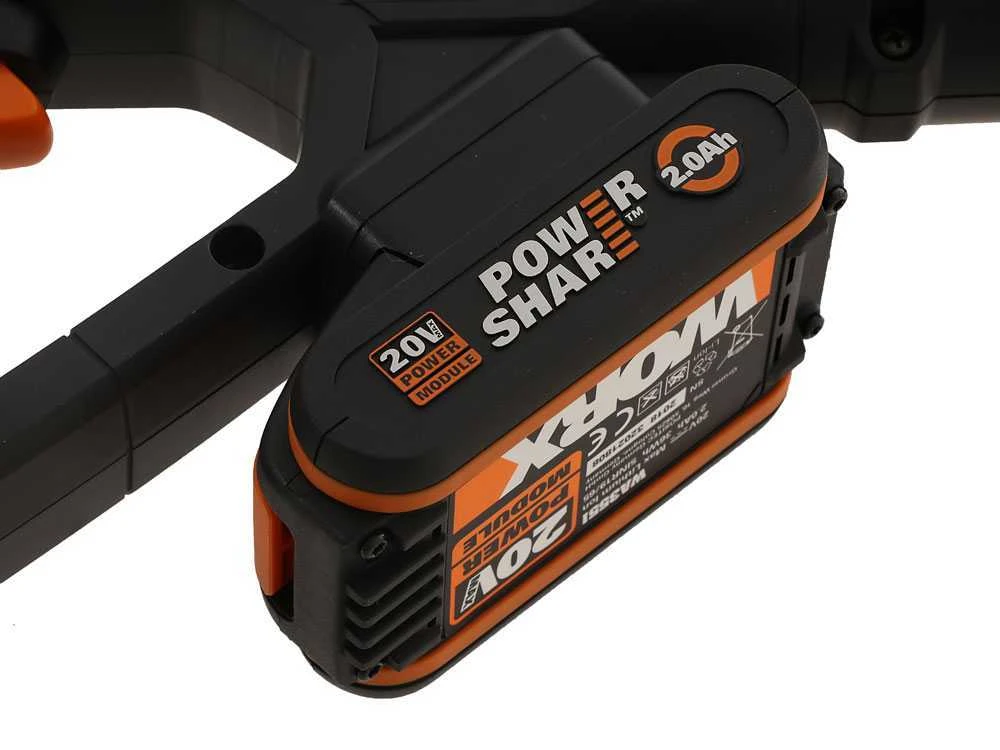 La batterie peut être utilisée avec d’autres instruments cordless de marque Worx, il est possible ainsi d’effectuer tous les travaux avec la même batterie de la débroussailleuse.