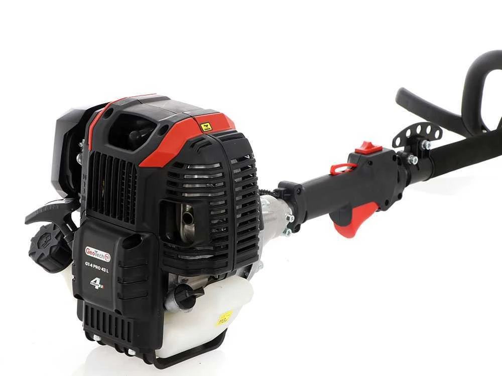 Débroussailleuse 4 temps à essence GeoTech-Pro GT-4 PRO 43 L, une machine d’excellente fabrication conçue pour l’amateur le plus exigeant qui recherche une machine pour garder son espace vert en parfait état. Puissante, légère et résistante, tout en étant à petit prix.