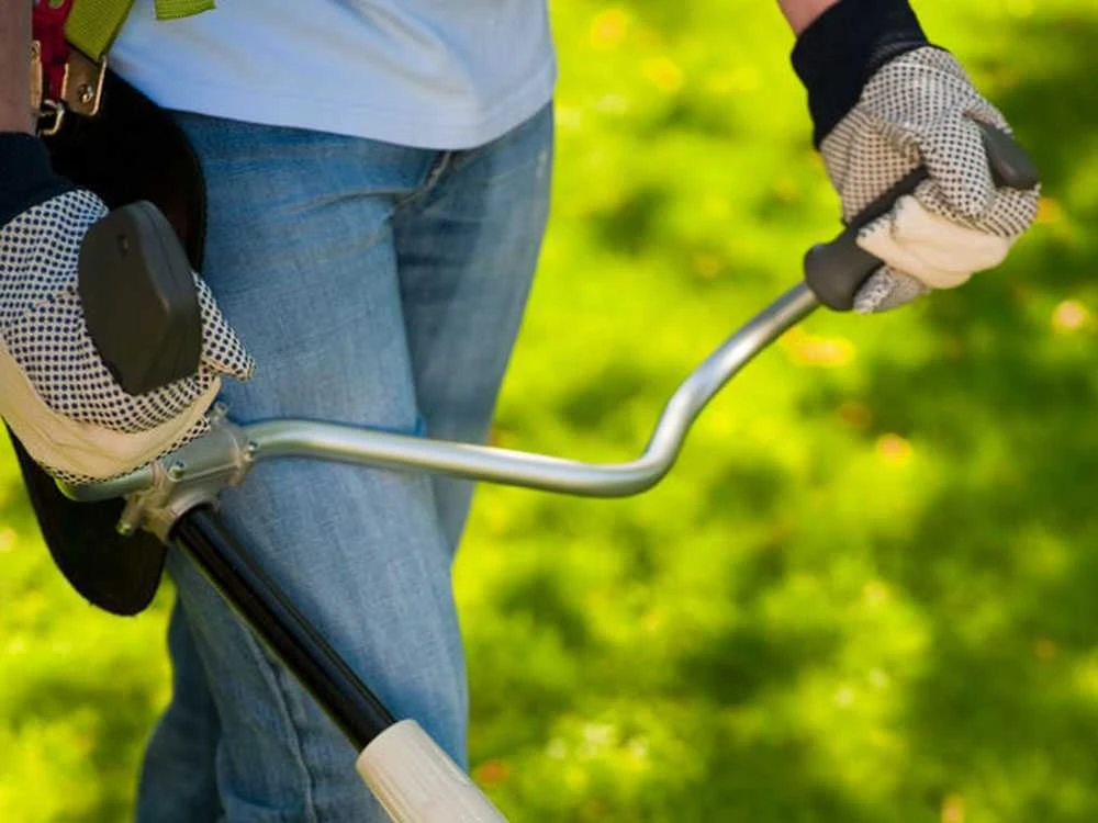Guidon et poignée sont revêtus en caoutchouc souple, la débroussailleuse pèse uniquement 5,1 kg sans batterie et accessoires de coupe.