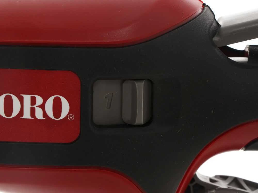 Débroussailleuse avec batterie au lithium de 60 Volts. Elle appartient au système Toro Flex Force qui vous permet d’utiliser un programme complet de machines alimentées par batterie pour l’entretien du jardin, partageant le même bloc d’alimentation, qui peut être acheté séparément.
