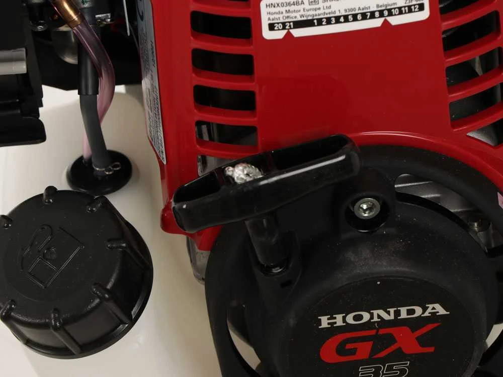 Équipé d’un réservoir de 0,63 litres, le moteur Honda GX35 fonctionne à essence verte. Il a d’ailleurs un autre réservoir d’huile d’une capacité de 100ml, qui alimente un système de lubrification exclusif que le constructeur Honda a développé pour ces moteurs.
