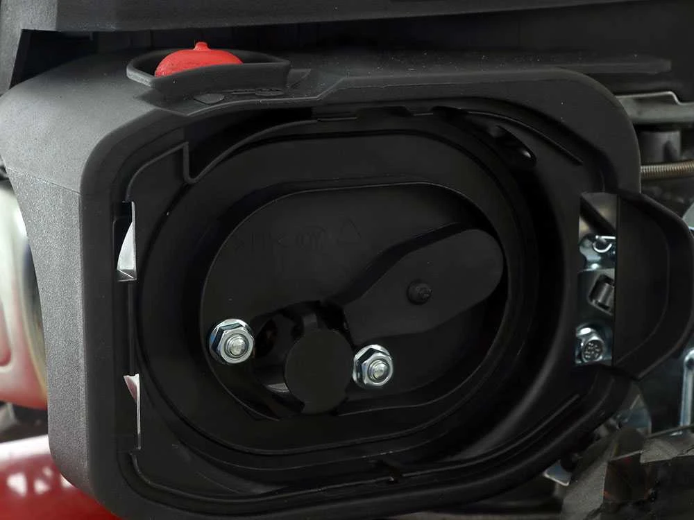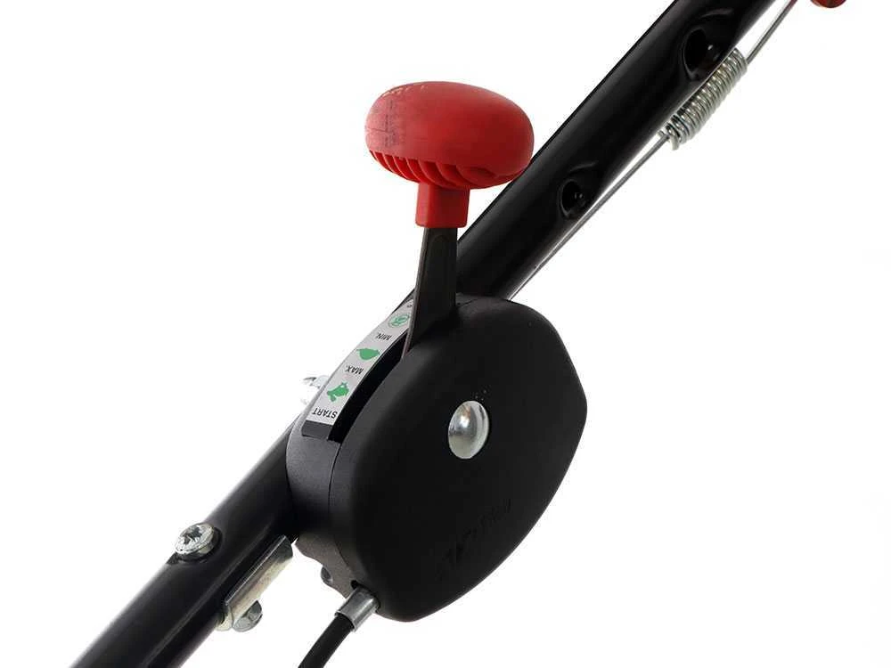 Ce modèle se distingue de presque tous les autres sur le marché (ayant la lame montée directement sur l’arbre du moteur) car il est équipé d’une transmission par courroie entre le moteur et la lame. La machine est donc plus protégée contre les chocs et cailloux accidentels. La tête est montée sur un arbre en acier robuste. La courroie a un effet de friction : en cas de collision, elle a tendance à glisser en évitant la plupart des problèmes. Le moteur est ainsi toujours protégé à 100 %.