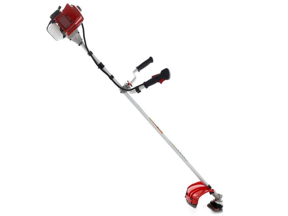 Le guidon asymétrique, avec permet au bras gauche une position plus large, alors que le bras droit, qui pourra gérer les commandes sur le guidon, est très serré et plus proche de la perche. Cet ajustement permet à l’opérateur d’avoir une position correcte des bras, non désaxée par rapport à la débroussailleuse, travaillant ainsi dans le confort plus total même sur différentes sessions de travail.