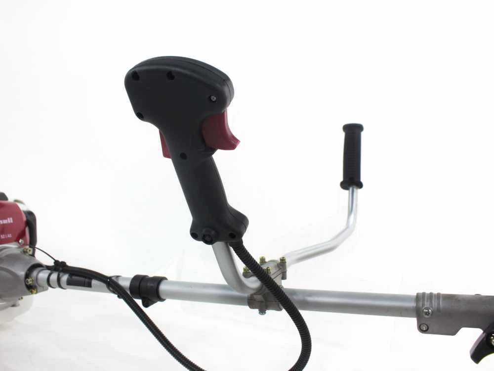 Toutes les commandes de la débroussailleuse sont placées de manière confortable sur la poignée à empoigner et utiliser des deux mains, en aluminium et à réglage universel, avec une forme particulière, permettant une prise comode et ferme.