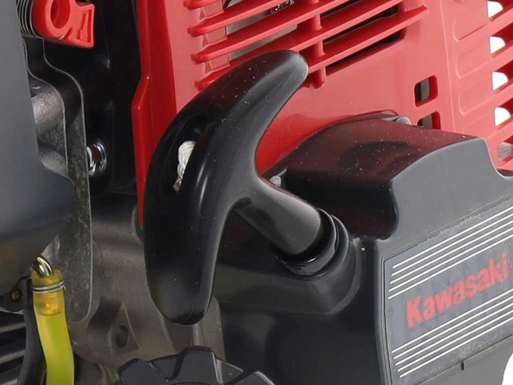 Équipé d’un réservoir de 0,5 litres, le moteur Kawasaki TJ 27 E fonctionne avec mélange de 2%.