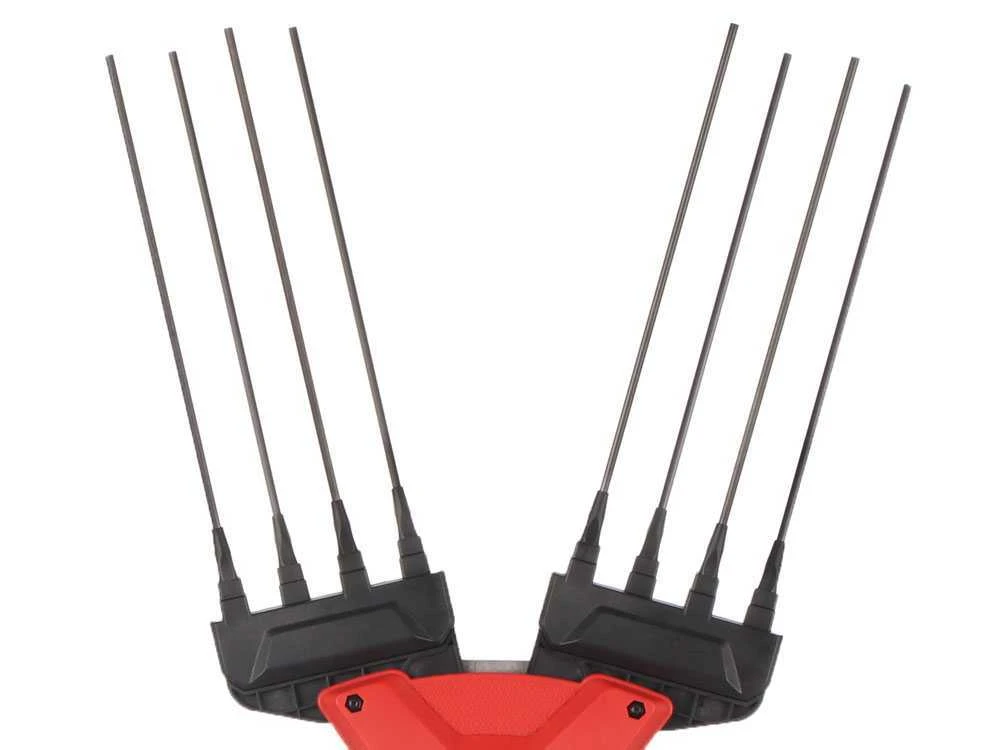 Les 8 dents solides en carbone de 31 cm de longueur sont conçues pour secouer délicatement mais efficacement les fruits et les olives des branches avec une vitesse de mouvement qui peut être facilement réglée pour maximiser le rendement et minimiser les dommages sur les fruits.