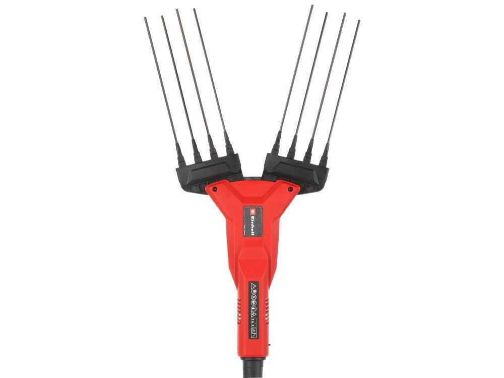 Le peigne vibreur Einhell a 4+4 dents de récolte en carbone à remplacement rapide.