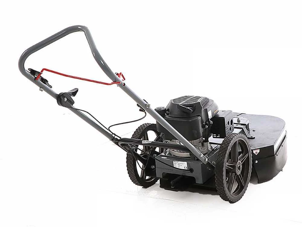 Cette débroussailleuse à roues se caractérise par un renvoi présente entre moteur et lame par transmission à courroie.