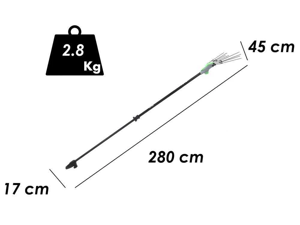 Il dispose d’une perche télescopique d’une longueur allant de 190 cm à 280 cm.