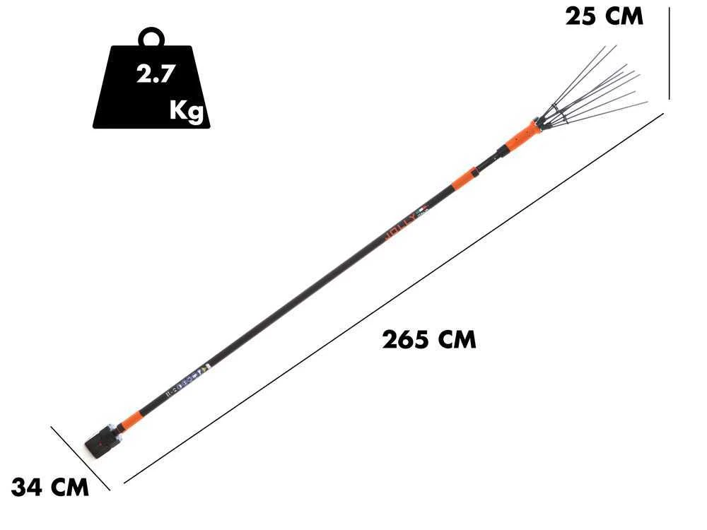 La perche de rallonge en aluminium a une excursion de longueur allant de 170 cm jusqu’à une longueur maximale de 310 cm. L’action d’extension peut être effectuée avec le système de crochet et de décrochage rapide.