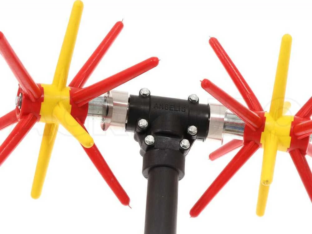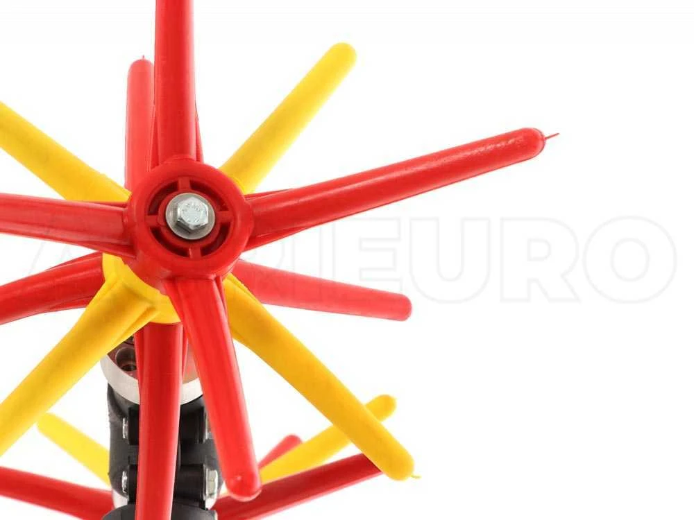 L’appareil de récolte consiste en sphères de plastique jaune vibrantes, dotées de 24 (12+12) dents chacune.