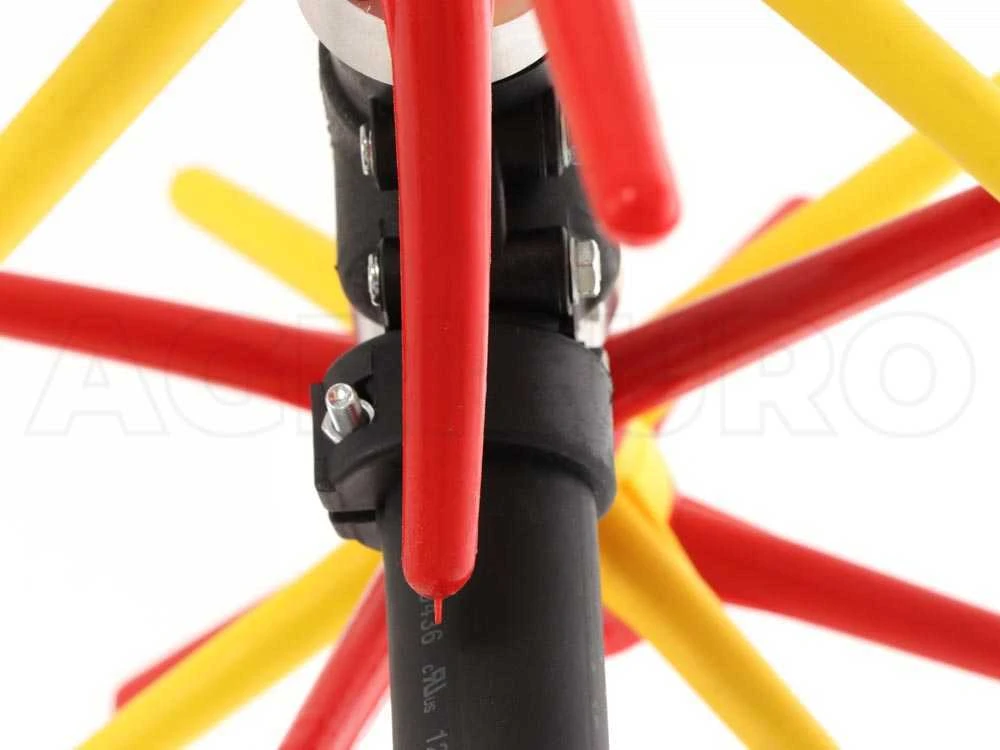 Une autre caractéristique particulière de ce peigne vibreur est le puissant moteur de 16V positionné au fond de la perche. En effet, il est doté d’un transformateur 12V – 16V qui transforme le courant de 12V provenant d’une batterie de voiture commune d’au moins 70Ah.