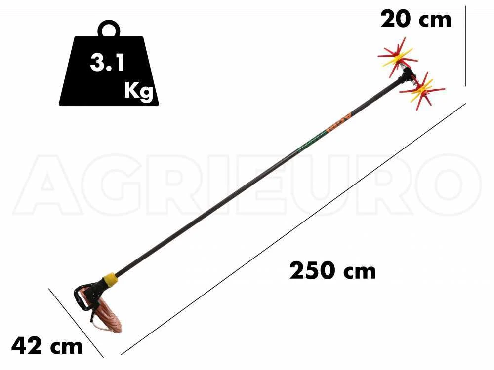 Le peigne vibreur est livré avec une perche en carbone très légère qui permet d’atteindre 250 cm de longueur.
