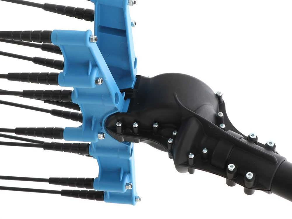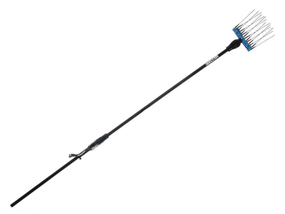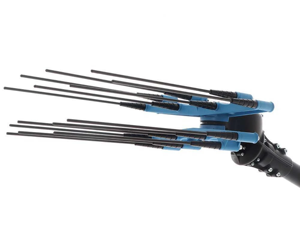 Le peigne vibreur, long de 2,5 mètres dans sa configuration de base, peut atteindre 5 mètres grâce à sa perche de rallonge en équipement montable en bout de perche.