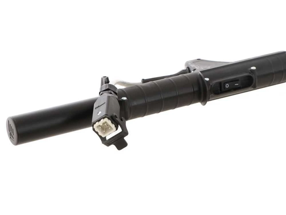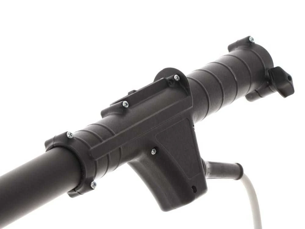 L’interrupteur ON/OFF positionné dans la partie basse de la perche permet à l’usager de prendre la machine une fois qu’elle est activée et de l’utiliser de la manière la plus adaptée au travail qu’il effectue, sans être obligé de tenir une main en position fixe pour appuyer en continu sur la gâchette.