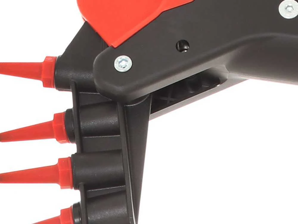 Moteur ULTRA PUISSANT: le plus puissant parmi les modèles électriques. Il réussit à activer les 2 râteaux (avec leurs pointes très longues), chacun avec un mouvement oscillatoire de 1150 + 1150 cycles.