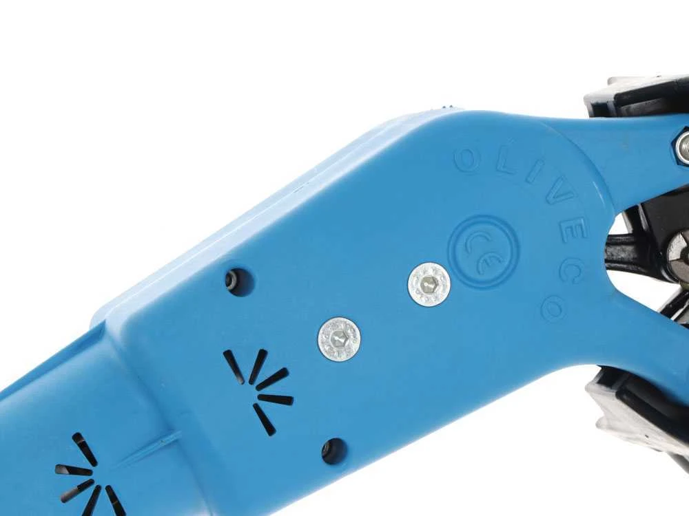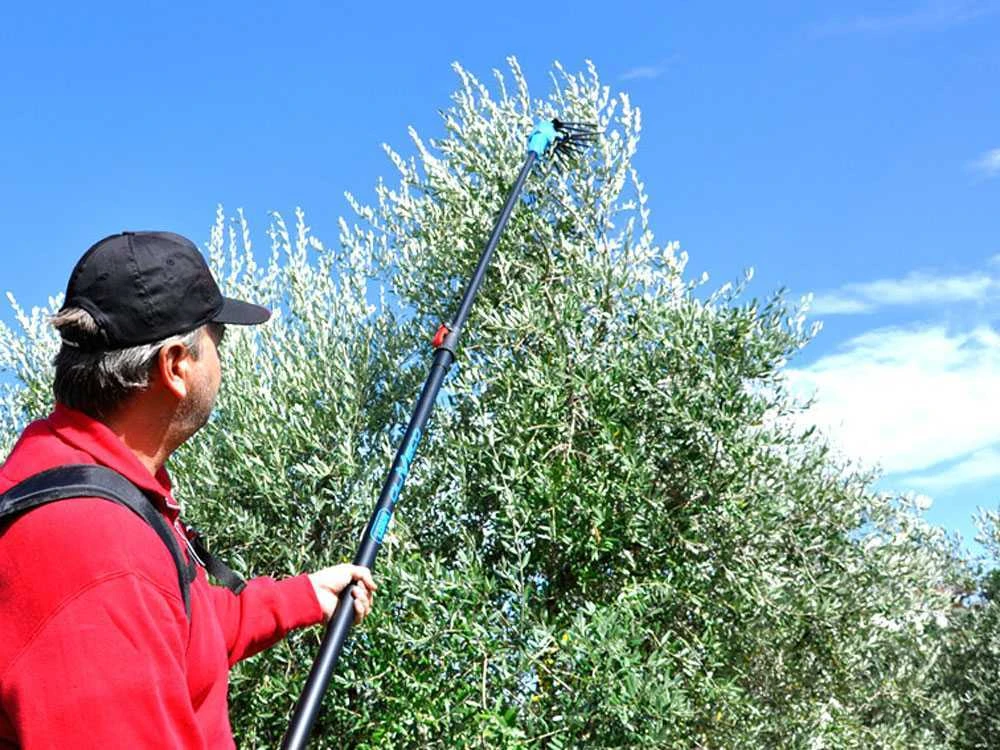 Ce modèle dispose de dents avec une forme en éventail, qui reproduit le mouvement de la main, pousse les olives vers la base, et arrive à cueillir même les fruits les plus résistants.