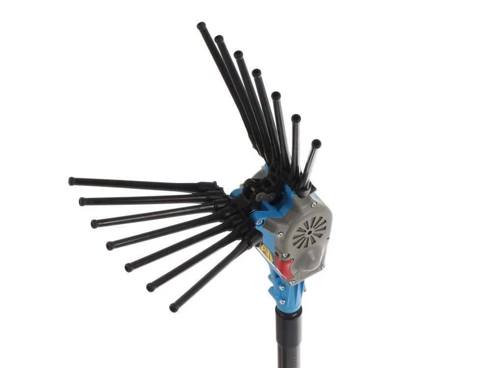Les bras portent donc un total de 14 dents en technopolymère à remplacement facile, toute l’unité de propulsion et de transmission est à fermeture hermétique, sans aucune possibilité de pénétration d’agents externes à l’intérieur. Cela garantit une excellente continuité de fonctionnement et un entretien presque inexistant. Les dents mesurent plus de 19 cm et permettent d’entrer en profondeur dans la plante.