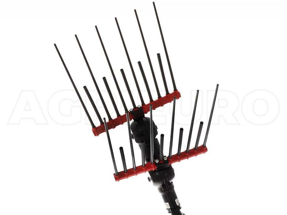 - Plus grand rayon d’action des deux râteaux En effet, en tournant ils s’approchent et s’éloignent rapidement de manière alternée en atteignant une distance remarquable l’un de l’autre dans la phase d’éloignement, grâce aussi à la longueur exceptionnelle des dents. Cela réduit la fréquence de déplacement des râteaux et de leur repositionnement à l’intérieur du feuillage.