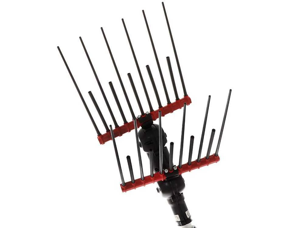 Caractéristique et exclusif DOUBLE MOUVEMENT: tandis que les râteaux oscillent avec un mouvement de droite à gauche, les simples pointes bougent en mouvement rotatif opposé en même temps, créant une ellipse de 8 x 7 cm qui permet un plus ample rayon de récolte. Ce mouvement d’oscillation et de rotation particulier permet la réduction au minimum des vibrations subies par l’opérateur.