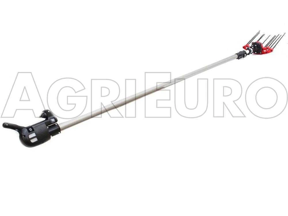 Excellente dans le cas des oliviers de petite grandeur, cette perche doit être empoignée en son centre, pour maintenir l’équilibre des poids à 50% – 50% (comme sur le schéma ci-dessus) se révélant encore plus maniable dans son utilisation.