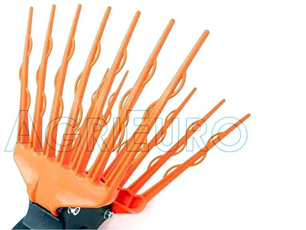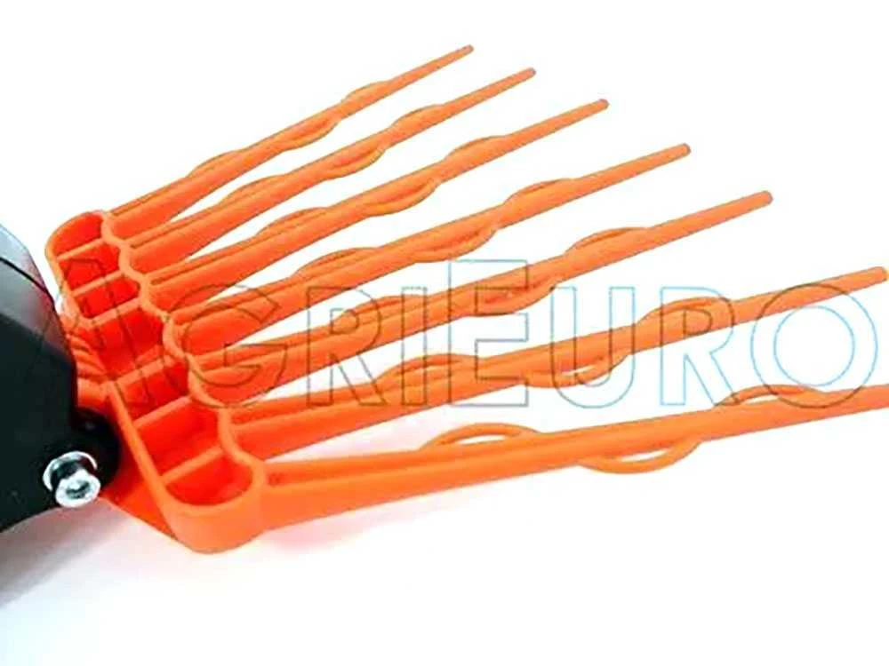 - Un plus grand respect de la plante et moins de casse des feuilles et des petites branches par rapport à tous les autres peignes vibreurs avec des dents rigides.