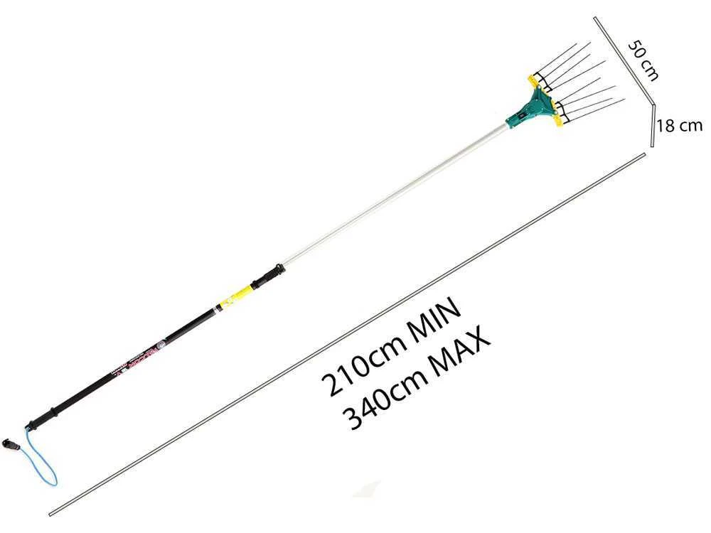 La perche est réglable sur n’importe quelle position entre la longueur de 210 à 340 cm (en référence à la longueur totale du peigne vibreur)