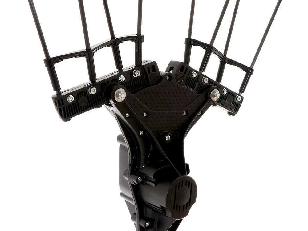 Les bras possèdent au total 8 pointes en carbone facilement remplaçables, toute l’unité de propulsion et de transmission est à fermeture hermétique, sans aucune possibilité d’introduire des agents externes à son intérieur. Ceci garantit une continuité de fonctionnement et d’entretien presque inexistant. Les pointes mesurent 32 cm pour permettre d’entrer en profondeur dans la plante.