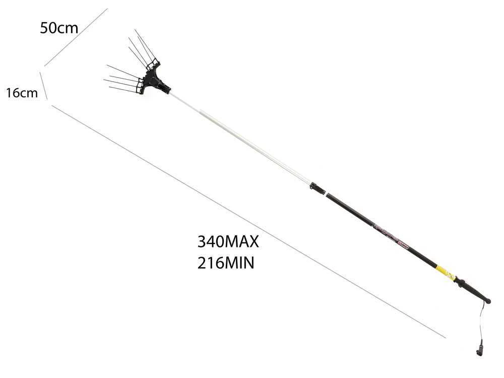La perche est réglable sur n’importe quelle position entre la longueur de 210 à 340 cm (en référence à la longueur totale du peigne vibreur)