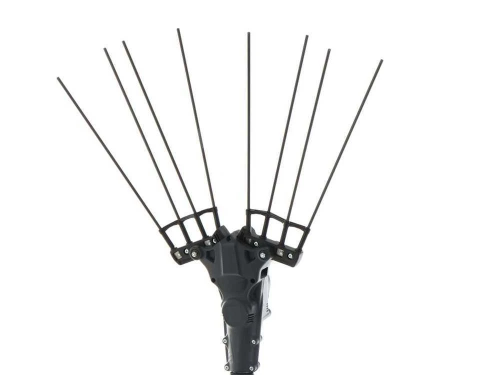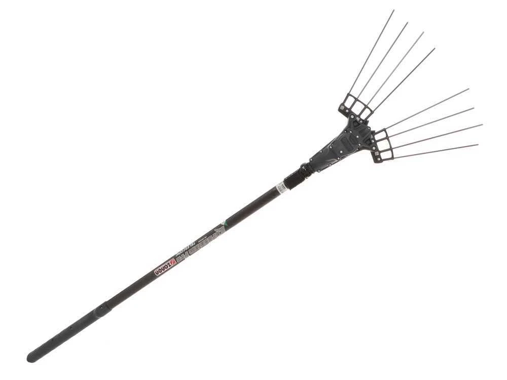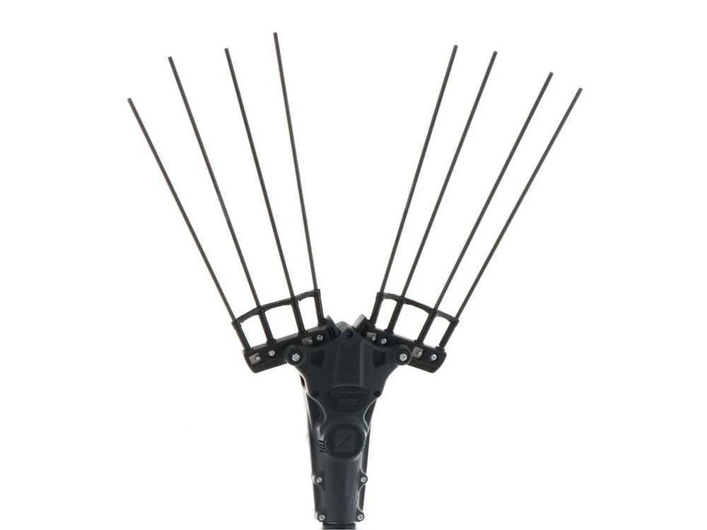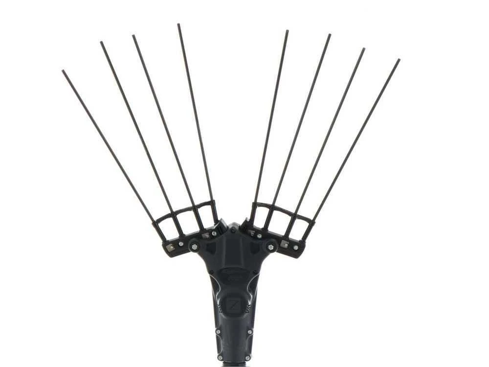 Il a 4 + 4 dents en fibre de carbone de 32cm faciles à remplacer, grâce au nouveau système de serrage de tige breveté Zanon.