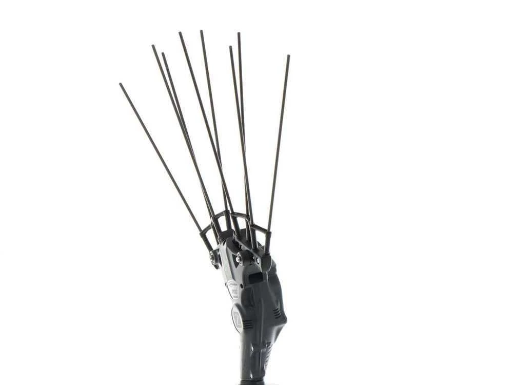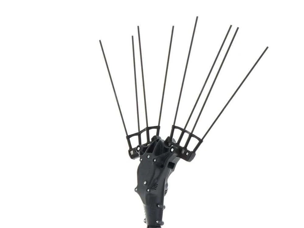 Les bras portent donc un total de 8 dents en fibre de carbone à remplacement facile, toute l’unité de propulsion et de transmission est à fermeture hermétique, sans aucune possibilité de pénétration d’agents externes à l’intérieur. Ce qui garantit une continuité de fonctionnement et un entretien presque inexistant. Les dents ont une longueur de 32 cm afin de permettre d’entrer en profondeur dans la plante.
