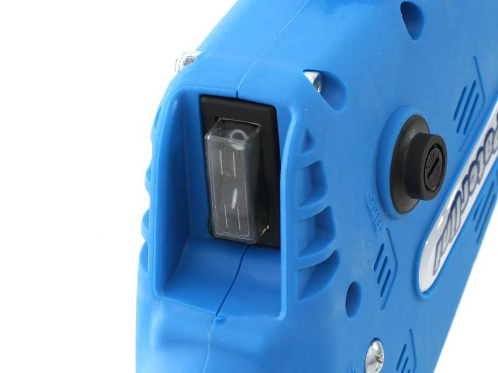 La machine est alimentée par une batterie, à laquelle attacher le chargeur offert.