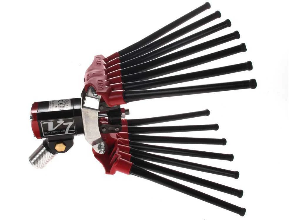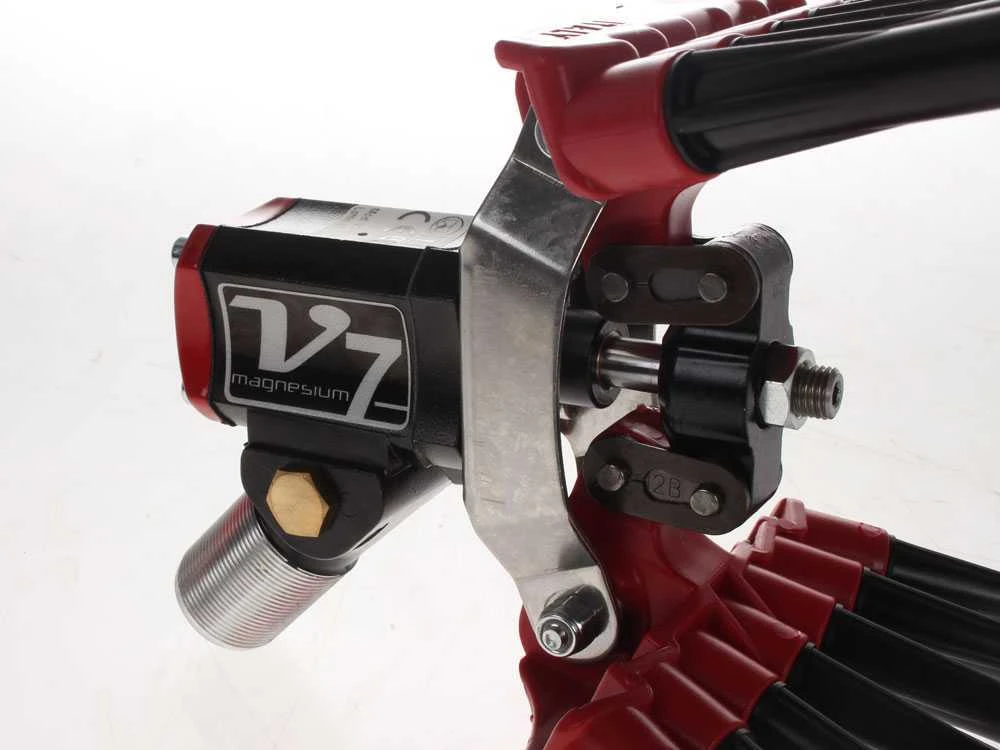 Le modèle Lisam V7 Magnesium est équipé d’une fourche en matière plastique et d’une disposition des tiges en éventail réalisées en NYLON qui rendent le produit extrêmement léger.