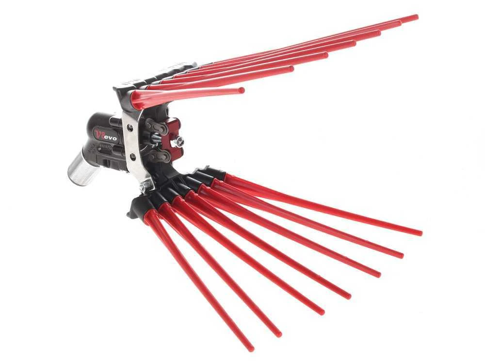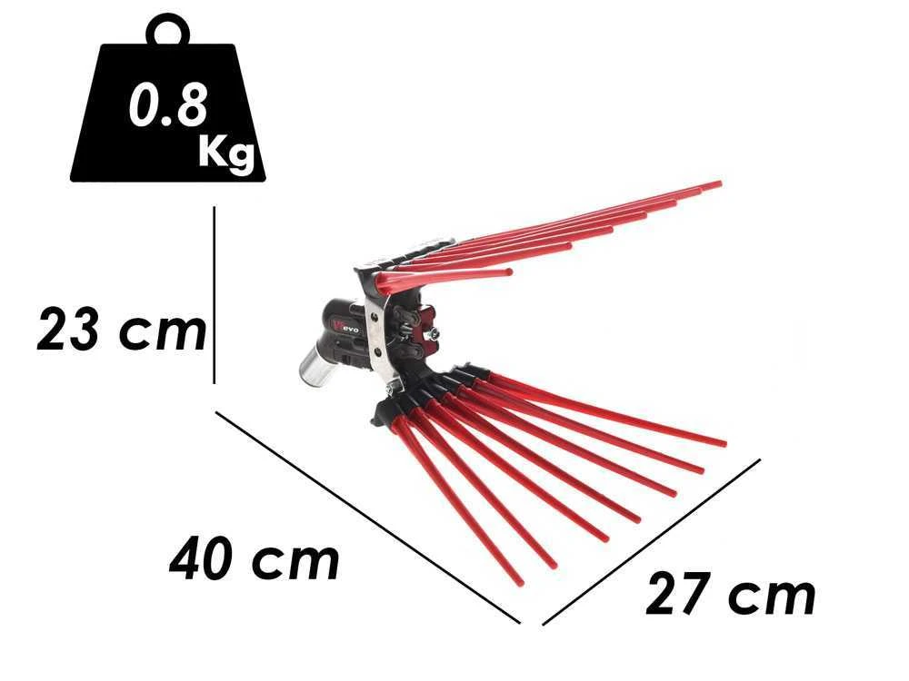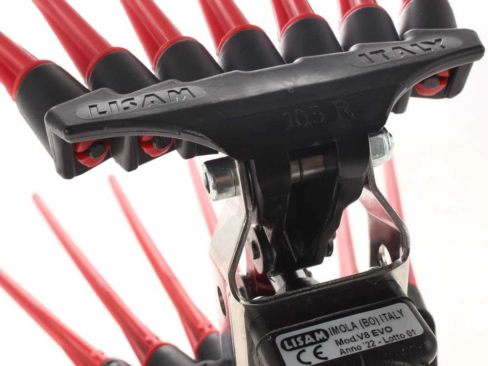 Le modèle Lisam V8 Evo est équipé d’une fourche en matière plastique et d’une disposition des tiges en éventail réalisées en NYLON qui rendent le produit extrêmement léger.