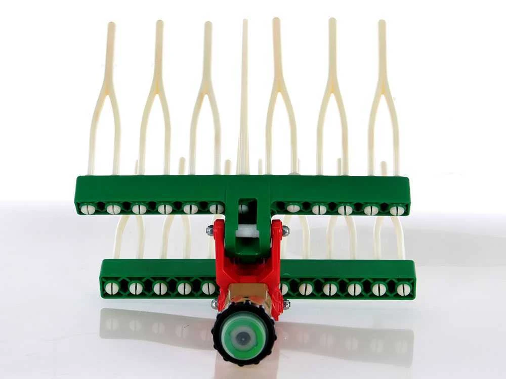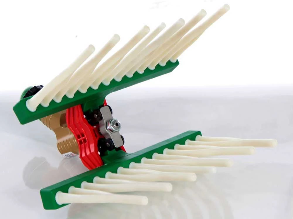 Course du piston extrêmement longue : elle confère à ce peigne vibreur une puissance encore plus élevé, grâce au large rayon d’oscillation réalisé par les 2 peignes.