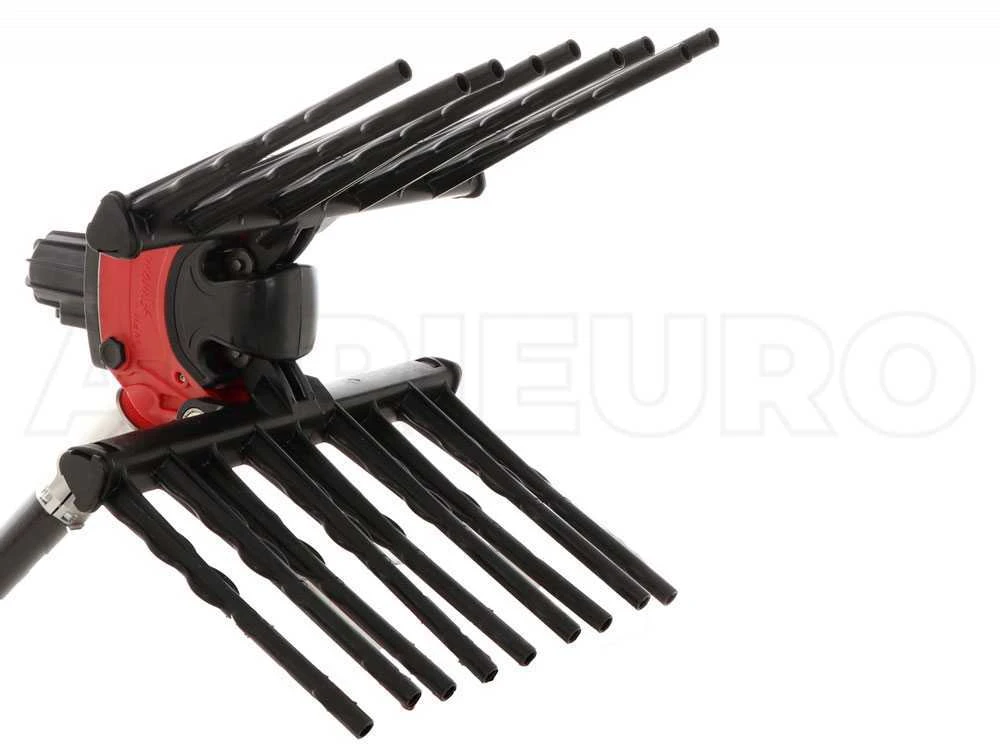 Le peigne n’abîme pas les olives et ne provoque pas de brisures de branches, grâce à sa plus grande largeur d’exercice par rapport aux traditionnels peignes vibreurs à peigne. Il a une largeur de travail de 26 cm à sa plus grande ouverture.