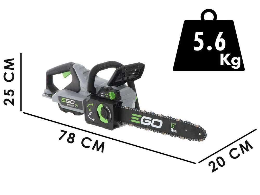 Elle est équipée d’une batterie de 56V 5Ah et d’un chargeur de batterie rapide compatible avec tous les autres produits de la marque EGO.