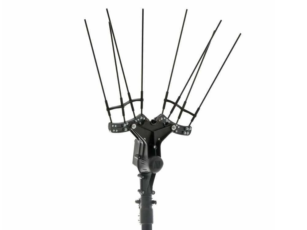 Perche télescopique réglable avec une hauteur variable de 210 cm à 330 cm.