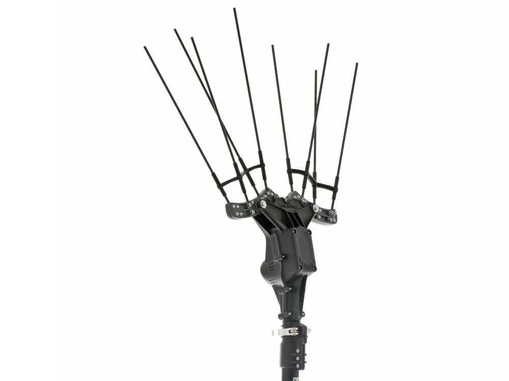 Perche télescopique réglable avec une hauteur variable de 210 cm à 330 cm.