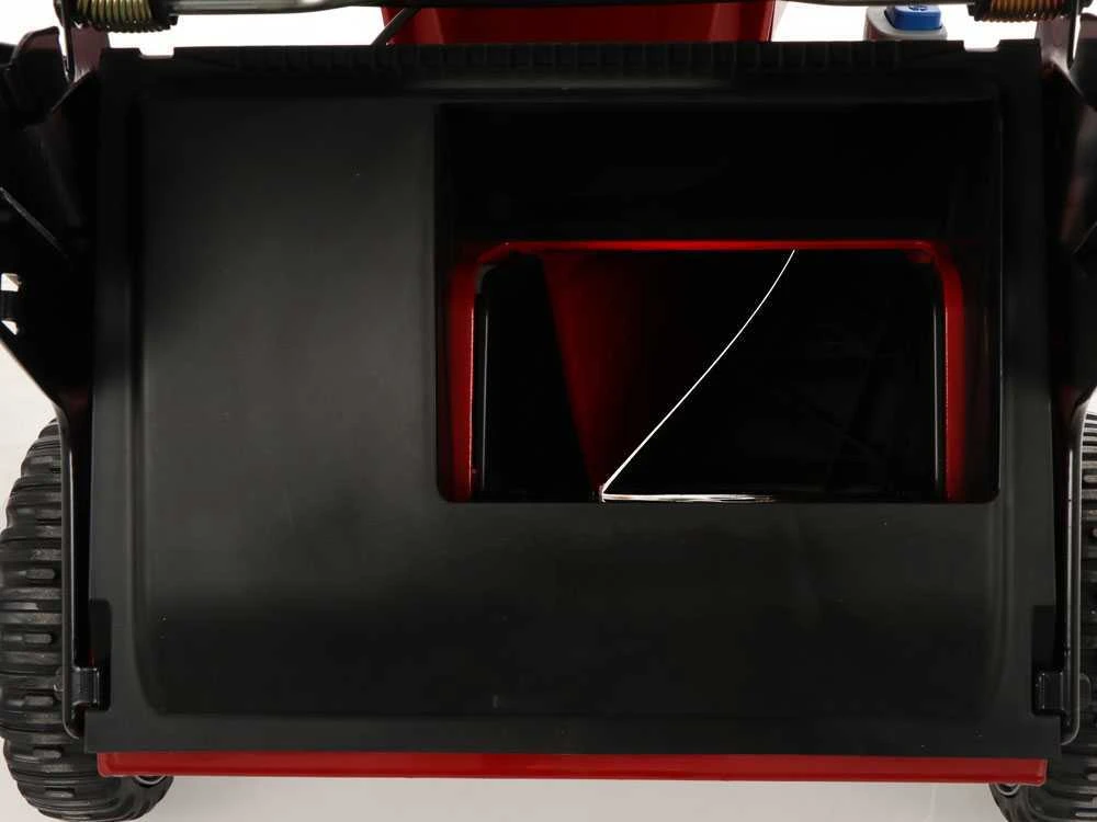 La tondeuse à gazon est équipée d’un bac en toile et en plastique de 60 litres, très facile à retirer et à vider.