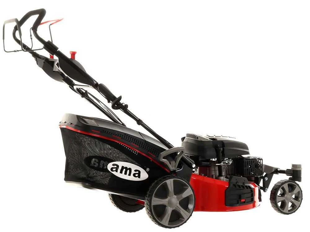 Régulation des hauteurs disponibles centralisée jusqu’à 6 positions disponibles de 25 à 75mm. Les roues antérieures peuvent être bloquées pour permettre à la machine de travailler même de façon traditionnelle. La tondeuse à gazon est équipée d’un puissant moteur 196 cm³ avec soupapes en tête, moteur puissant aux consommations très réduites.