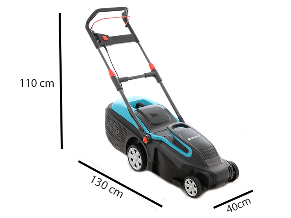 Tondeuse à gazon électrique Gardena Powermax 1600/37 est une petite tondeuse poussée, dotée de réglage centralisé de la hauteur de coupe, d’un guidon ergonomique rabattable et réglable.