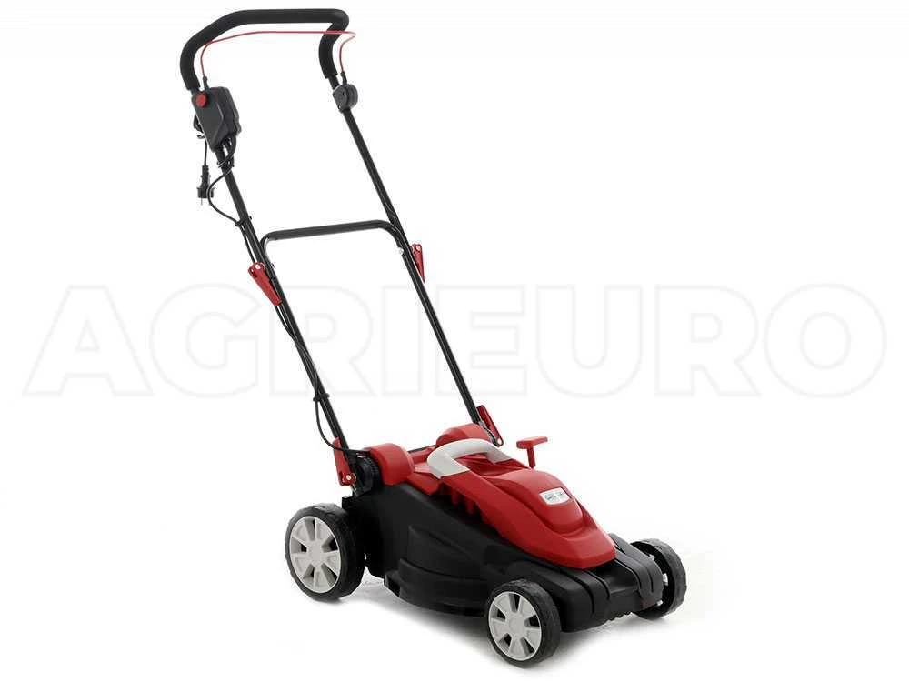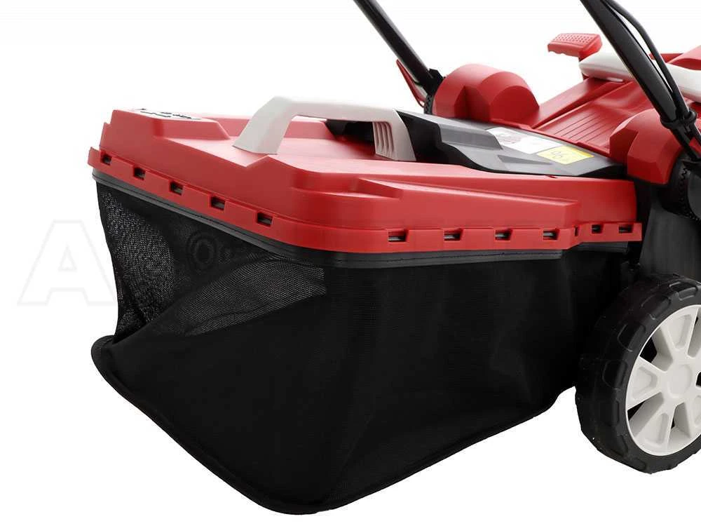 Tondeuse à gazon électrique GeoTech TTD 430B-MW avec système d’éjection postérieure, coupe mulching et ramassage par bac. Idéale pour tondre le gazon sans l’encombrement et le poids d’un moteur thermique.