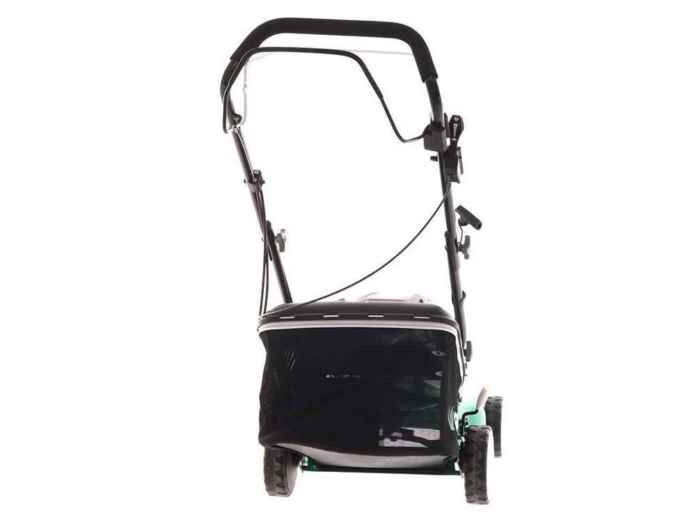 POLYVALENCE ÉLEVÉE Il est possible de recueillir l’herbe dans le bac renforcé, faire du mulching ou décharger aussi bien latéralement que à l’arrière les résidus de l’herbe coupée. Le changement de modalité de la coupe de l’herbe s’effectue rapidement sans besoin d’outils. Capacité du bac de ramassage 45 L avec roues arrières de 180 mm.