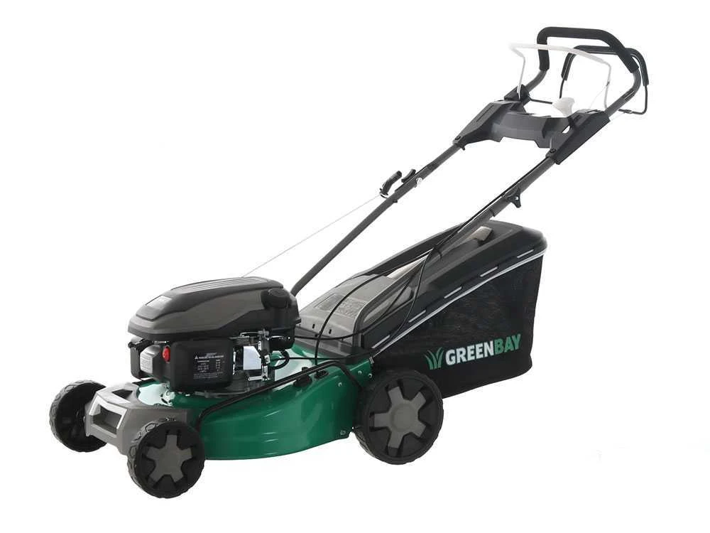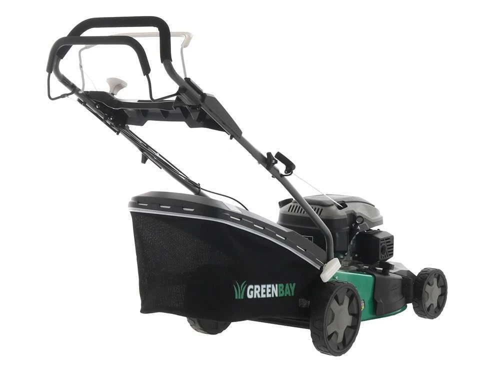 Tondeuse à gazon tractée GreenBay GB-LM 46 S à essence 4 en 1 conçue pour utiliser tous les systèmes de coupe: