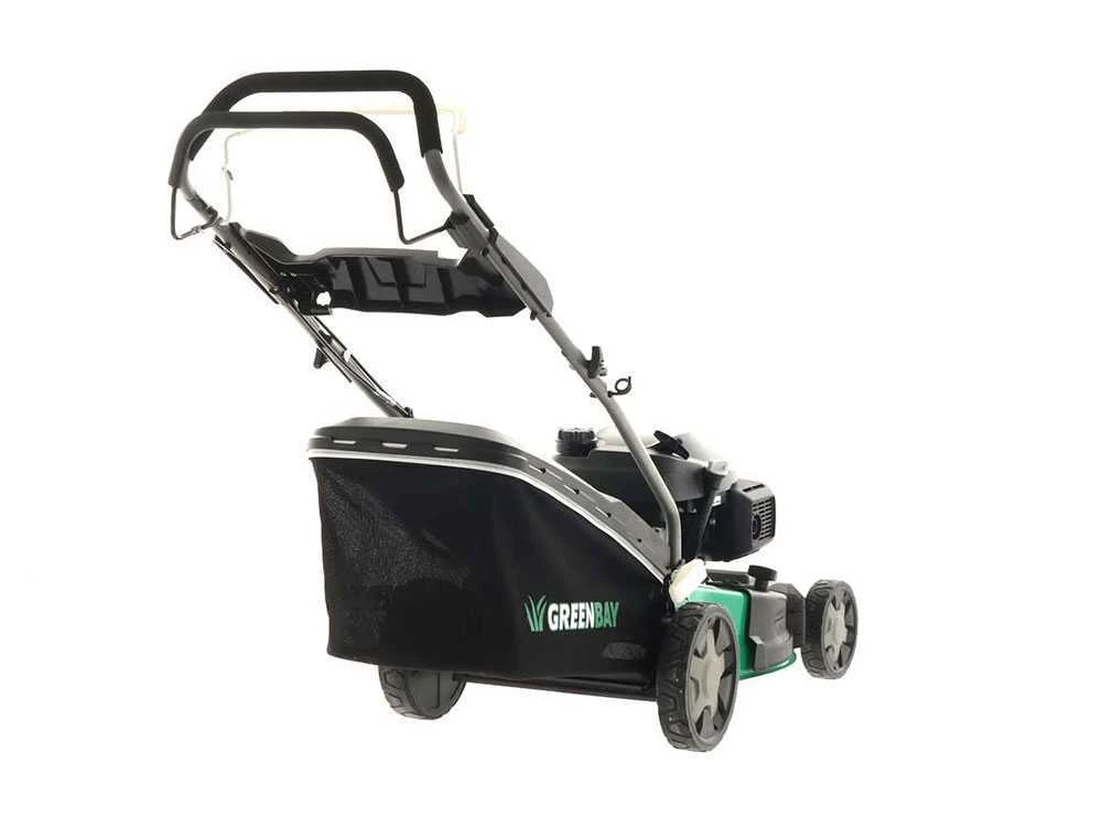 Tondeuse à gazon tractée GreenBay GB-LM 46 SH à essence 4 en 1 conçue pour utiliser tous les systèmes de coupe: