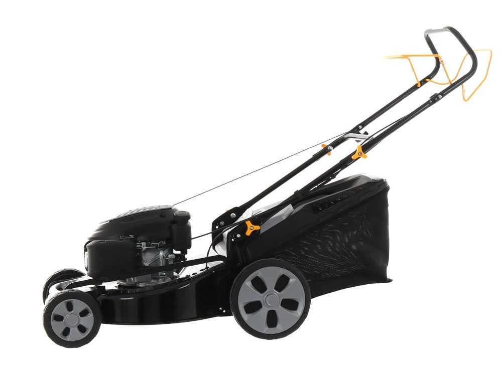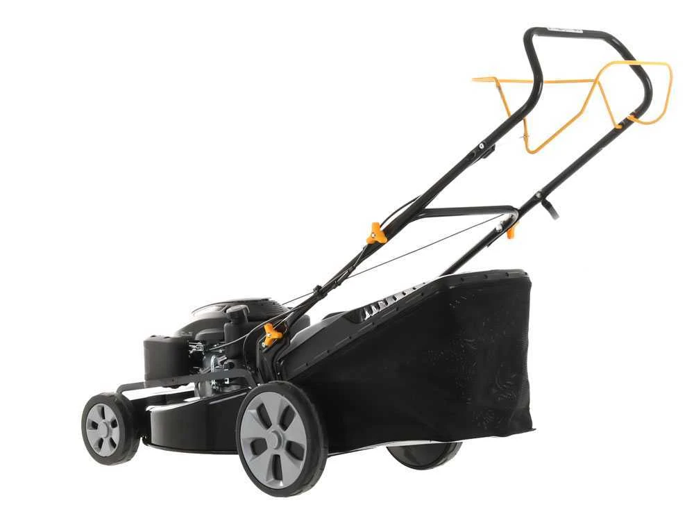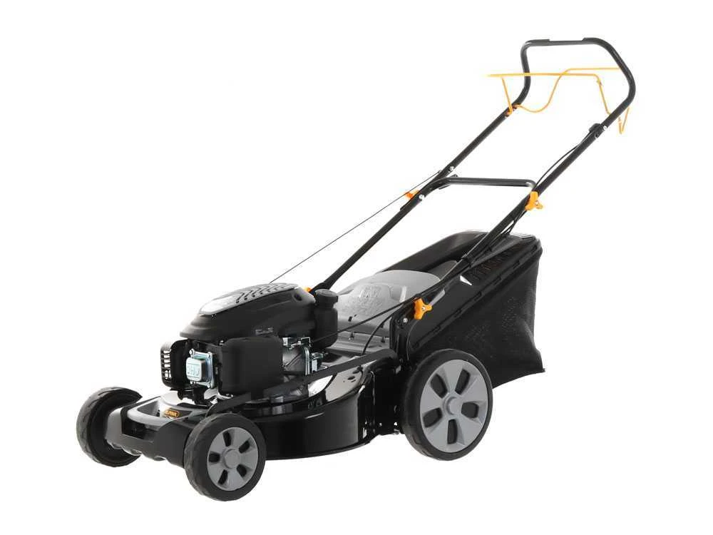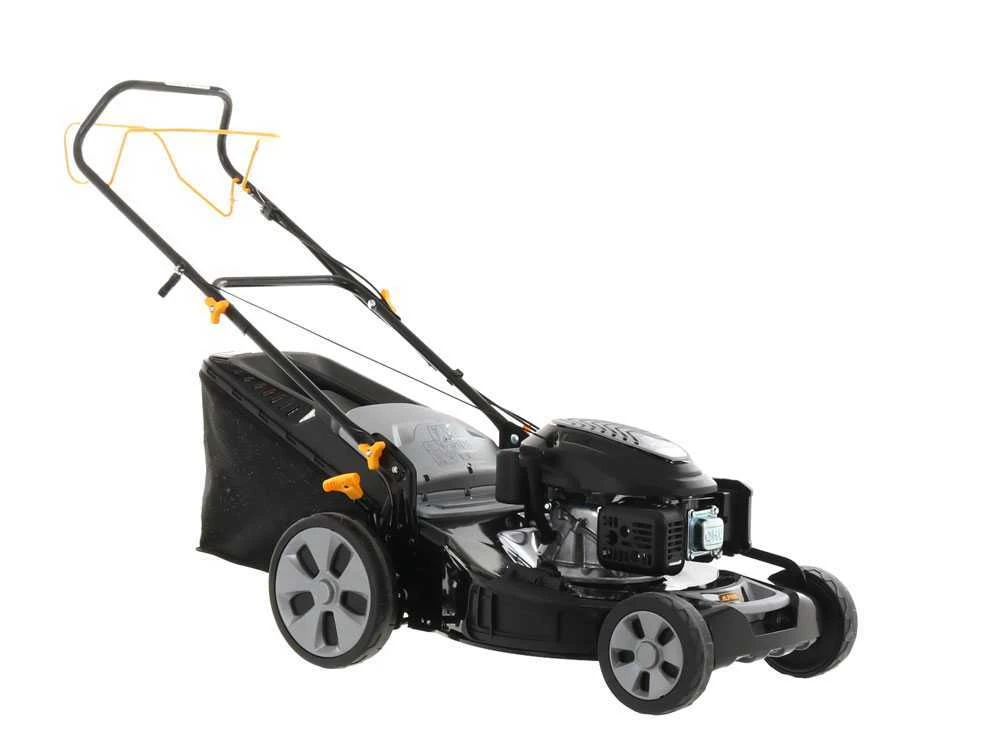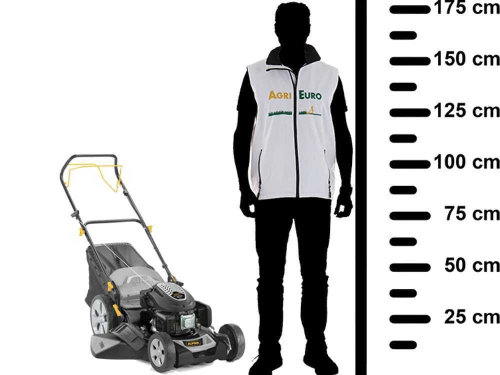 Tondeuse tractée Alpina AL5 51 SAQ en acier avec une amplitude de coupe de 51 cm, muni d’un moteur thermique 4 temps.