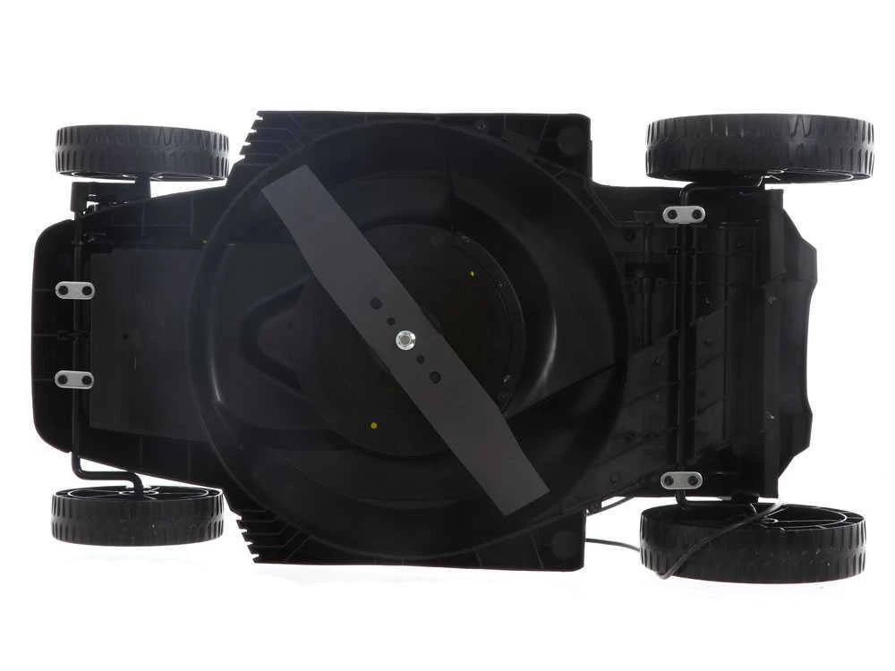 La hauteur de coupe centralisée de la tondeuse permet un choix parmi 6 positions différentes, avec une largeur de coupe 33 cm.
