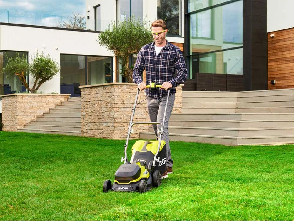 La tondeuse à gazon sur batterie RYOBI RY18LM37A-140 est l’idéal pour tondre le gazon sans devoir s’encombrer du poids du moteur thermique, et sans être gêné par un fil électrique.