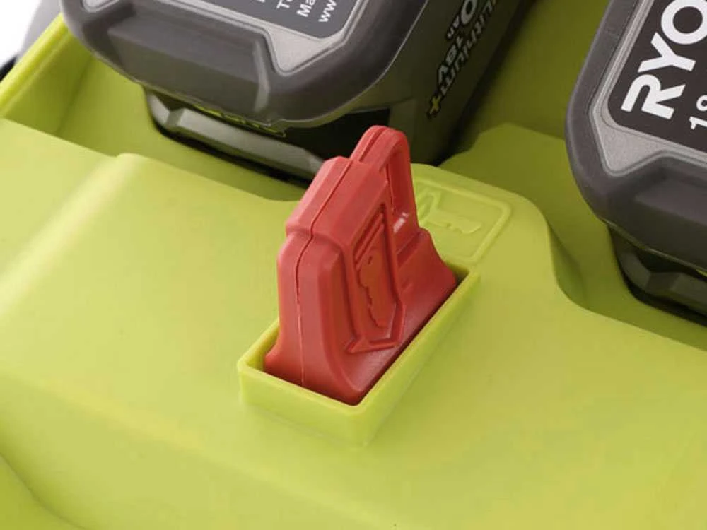 Il suffit de soulever la protection et retirer la batterie pour pouvoir la recharger. Les batteries en 18 V aux lithium-ions peuvent être rechargées à n’importe quel moment (comme les batteries de nos smartphones modernes, elle n’a pas d’effet de mémoire) pour résulter toujours prêtes à l’emploi. Elle dure environ 30 fois plus qu’une batterie normale. La batterie est d’ailleurs dotée d’un indicateur du niveau de charge et d’un bouton d’activation pour prévenir les allumages accidentels.